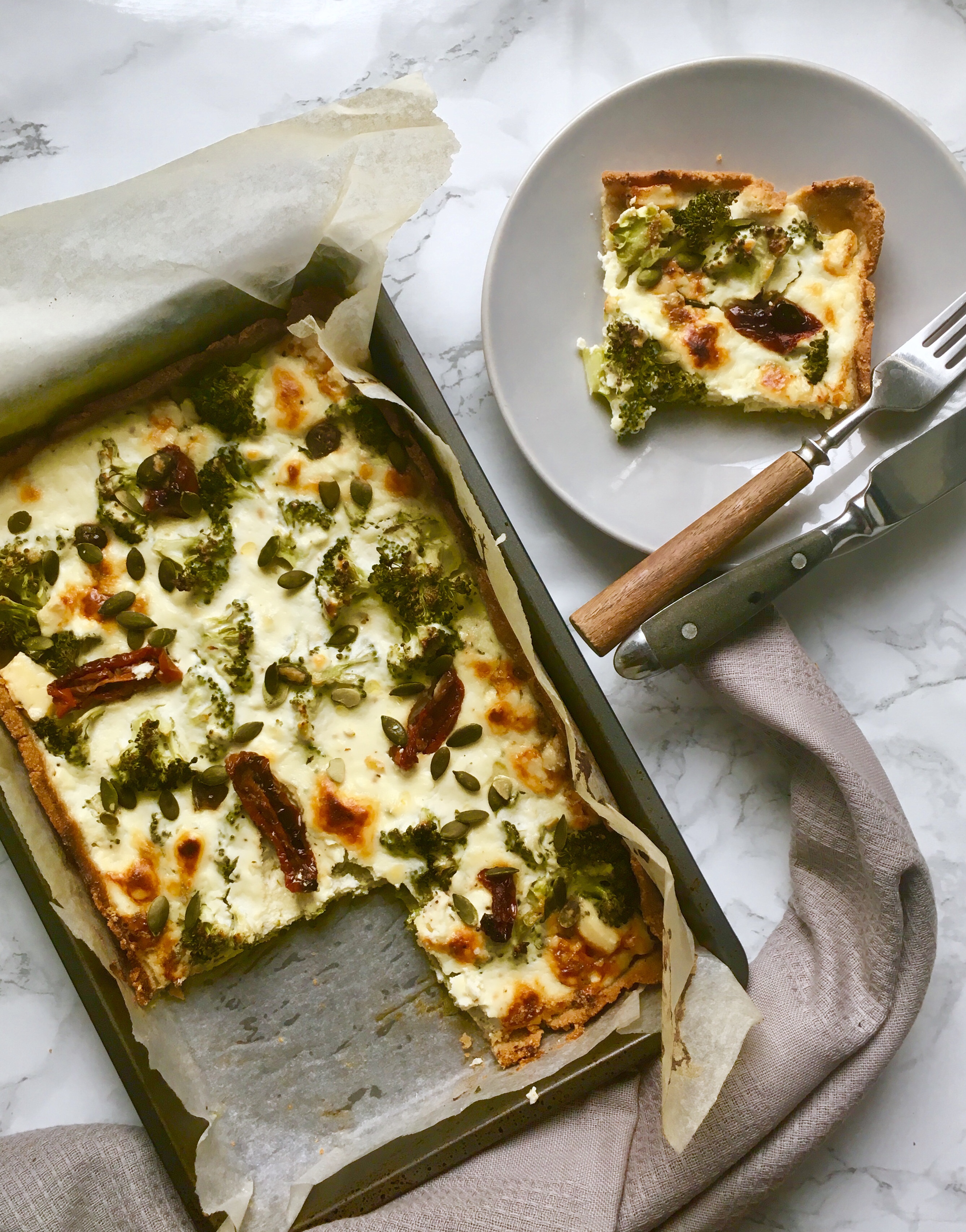 Parsakaali-sinihomejuustopiirakka (Broccoli and blue cheese pie)