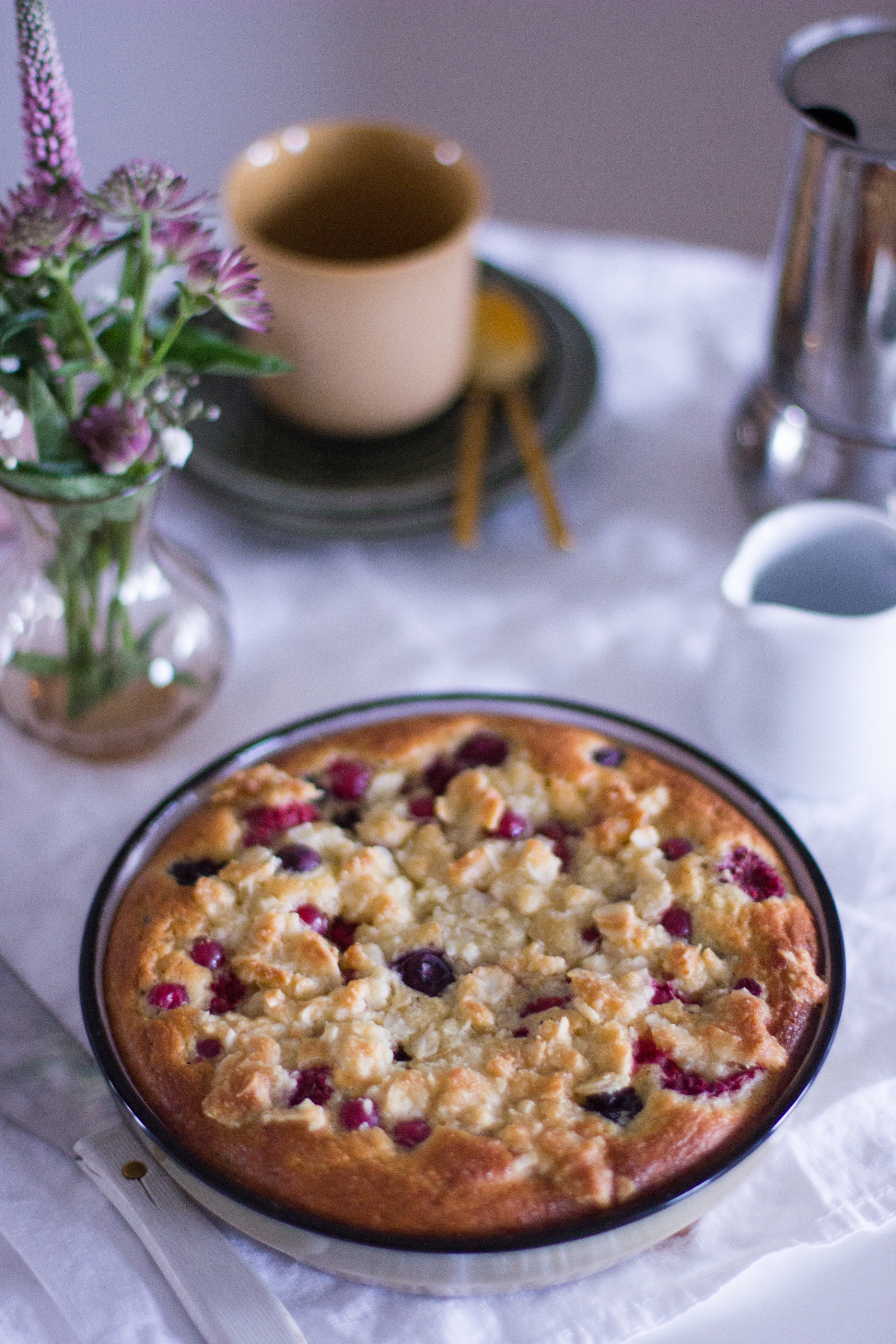 Marjapiirakka on supernopea, mehevä ja herkullinen tarjottava juhlissa tai muutoin erityisenä päivänä. Ohjeen piirakka on tehty pieneen, n. 6 annoksen vuokaan. Mikäli haluat piirakasta tavallisen (vuoan halkaisija n. 24 – 26 cm) täytyy ohje kaksinkertaistaa. Marjoja voi piirakkaan valita oman pakastimen antimien tai tuoreiden marjojen saatavuuden mukaan. Itse käytin piirakassa ylivuotista pakastemarjasekoitusta.