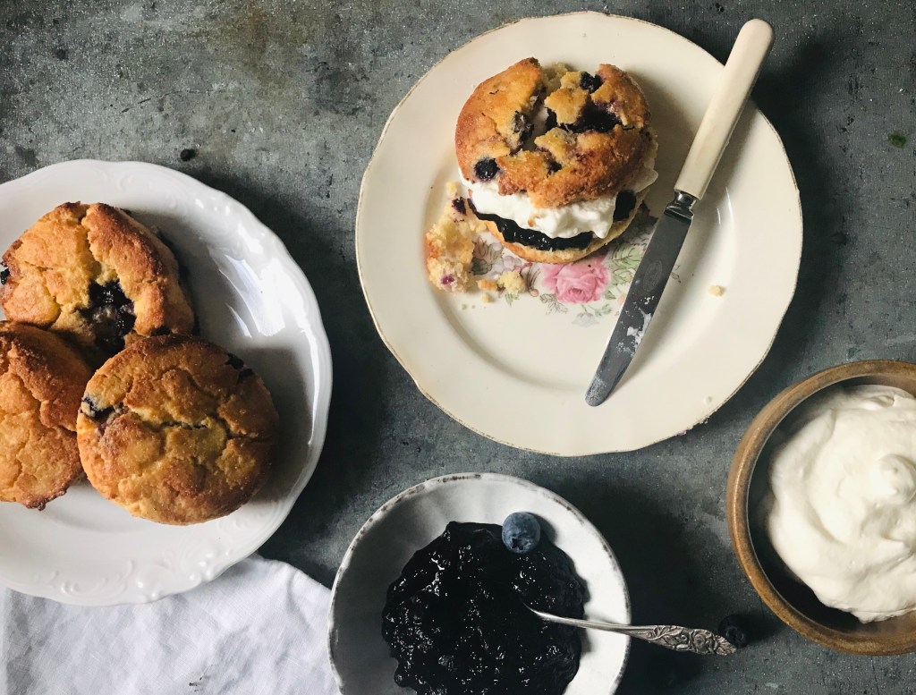 12. Tarjoa jäähtyneet skonssit mustikkahillon ja kermavaahdon kera.