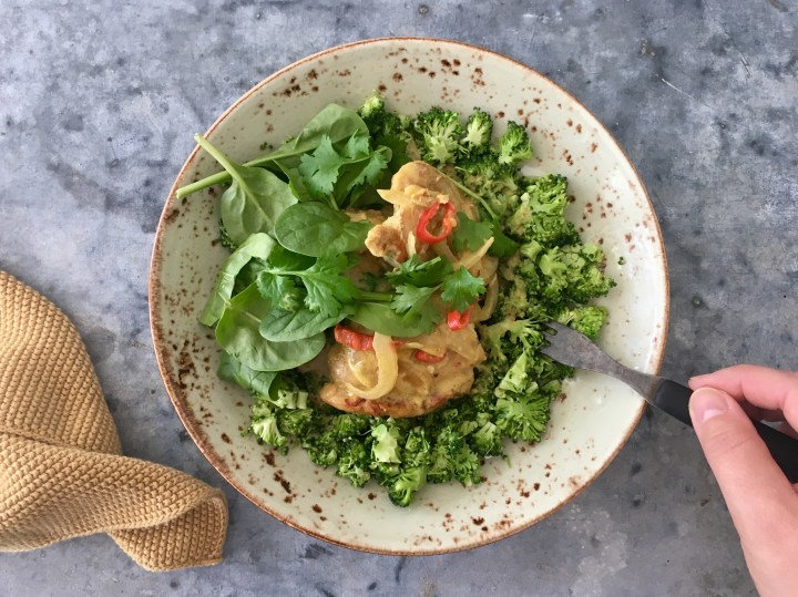 - Päivällinen: Broileri-kookoscurry ja parsakaaliriisi