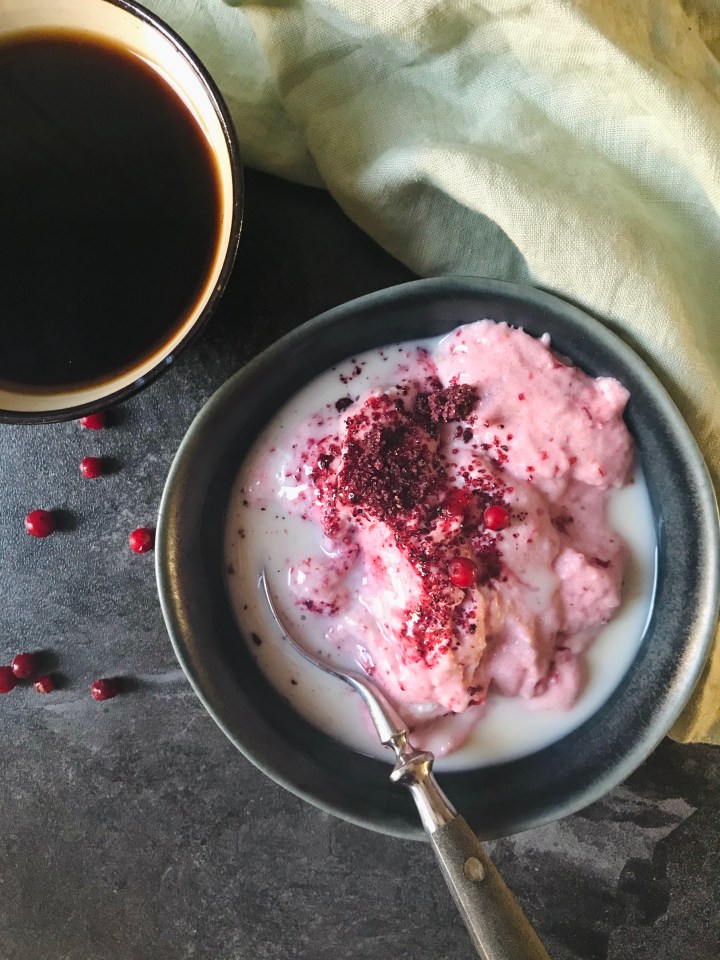 - Aamiainen: Kreikkalaista jogurttia marjoilla ja siemenillä ja munakahvi